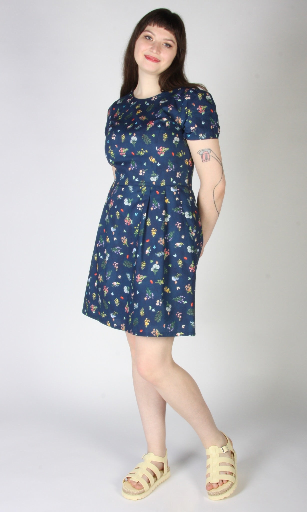 Engoulevent is one of our most popular Birds cuts, and it's back in gorgeous new cotton prints, with size 20 available for the first time! This style is so easy to wear, with short sleeves, pleats at the waist, and generous pockets in the skirt.