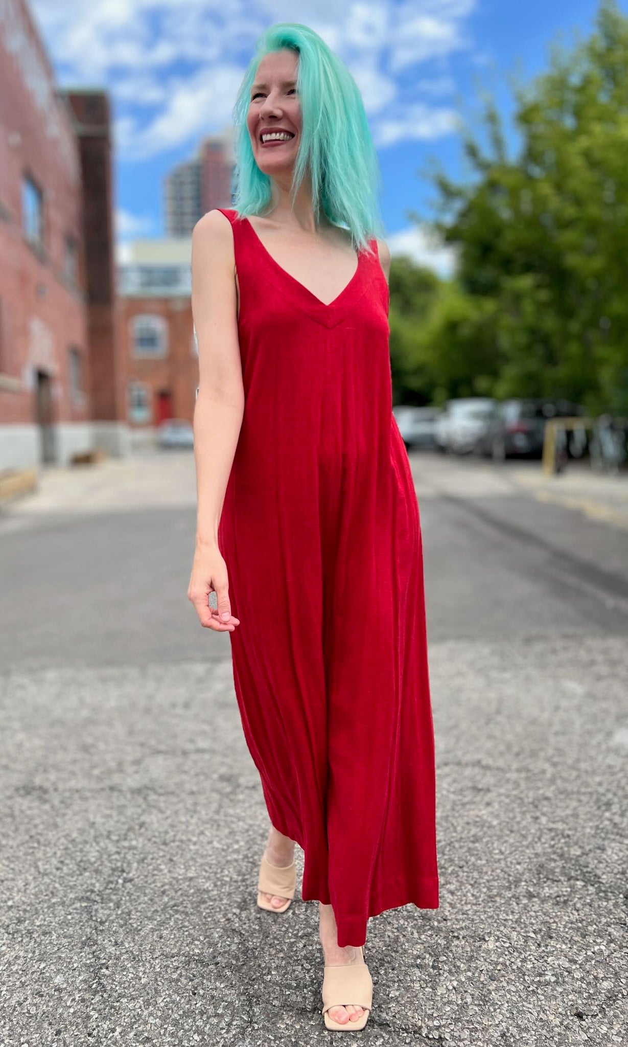 Tawny Pipit is based on our popular Bobwhite cut! This new incarnation has the same deep V front and back neck, and flowy cut, but the strap is a bit wider! It is made of a soft rayon/linen blend noil, and has a step-in neckline. Tawny Pipit is also available in Black, Forest Green, Golden Moss and Lilac.