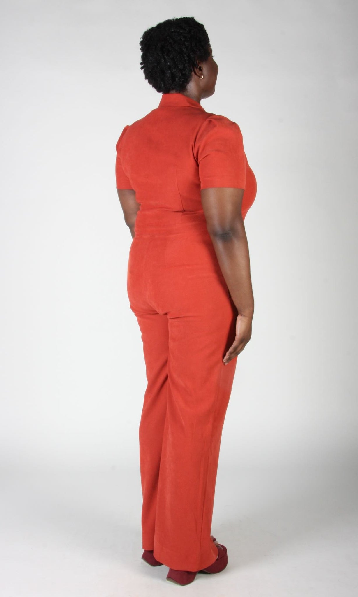 Tyrannulet is a beautifully tailored, zip-front jumpsuit with a collar, front and back pockets in the pant, and a perfectly flared leg.