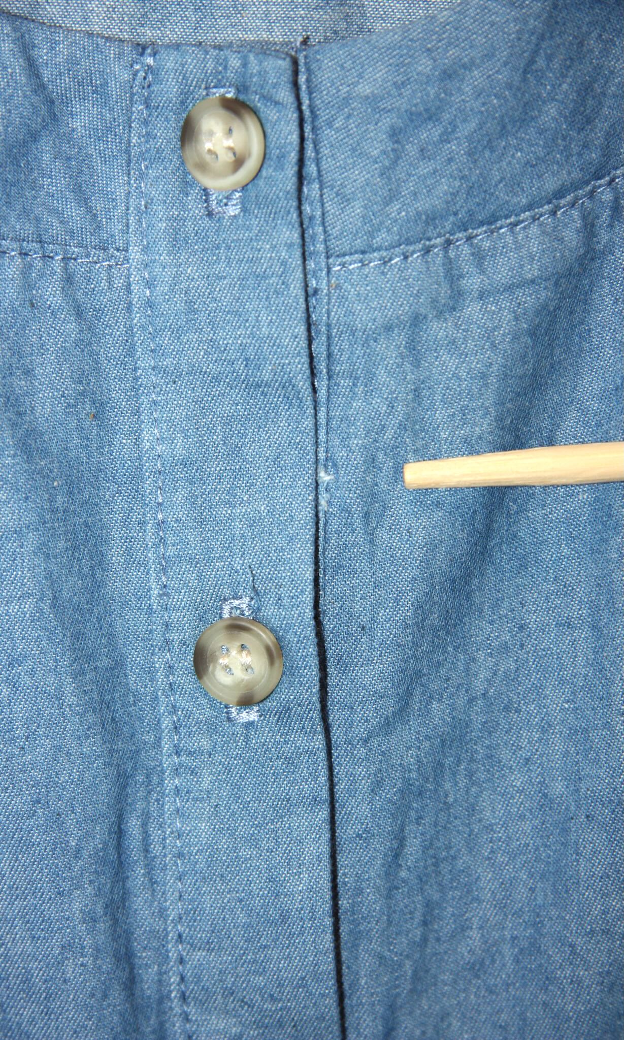 Special Notes: This item is part of our Studio Sale event and is lightly damaged. There is a very small shredded edge on the front placket just above the second button.