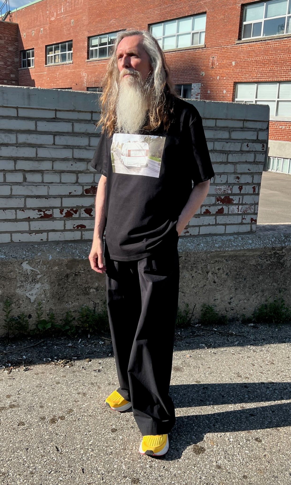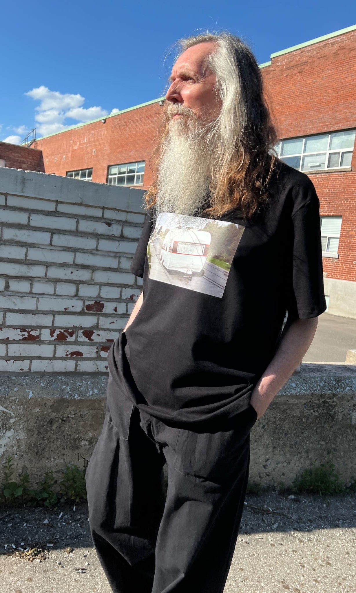 In these images Hayley is 5'7" and wears our size S Cropped White tee, and Neil is 6'1" and wears our size 2X Classic Black tee. These tees fit on the larger side of the Birds size chart, but for your everyday classic T-shirt, that fits a bit more generously, they fit 'normally', or as you would expect them to.
