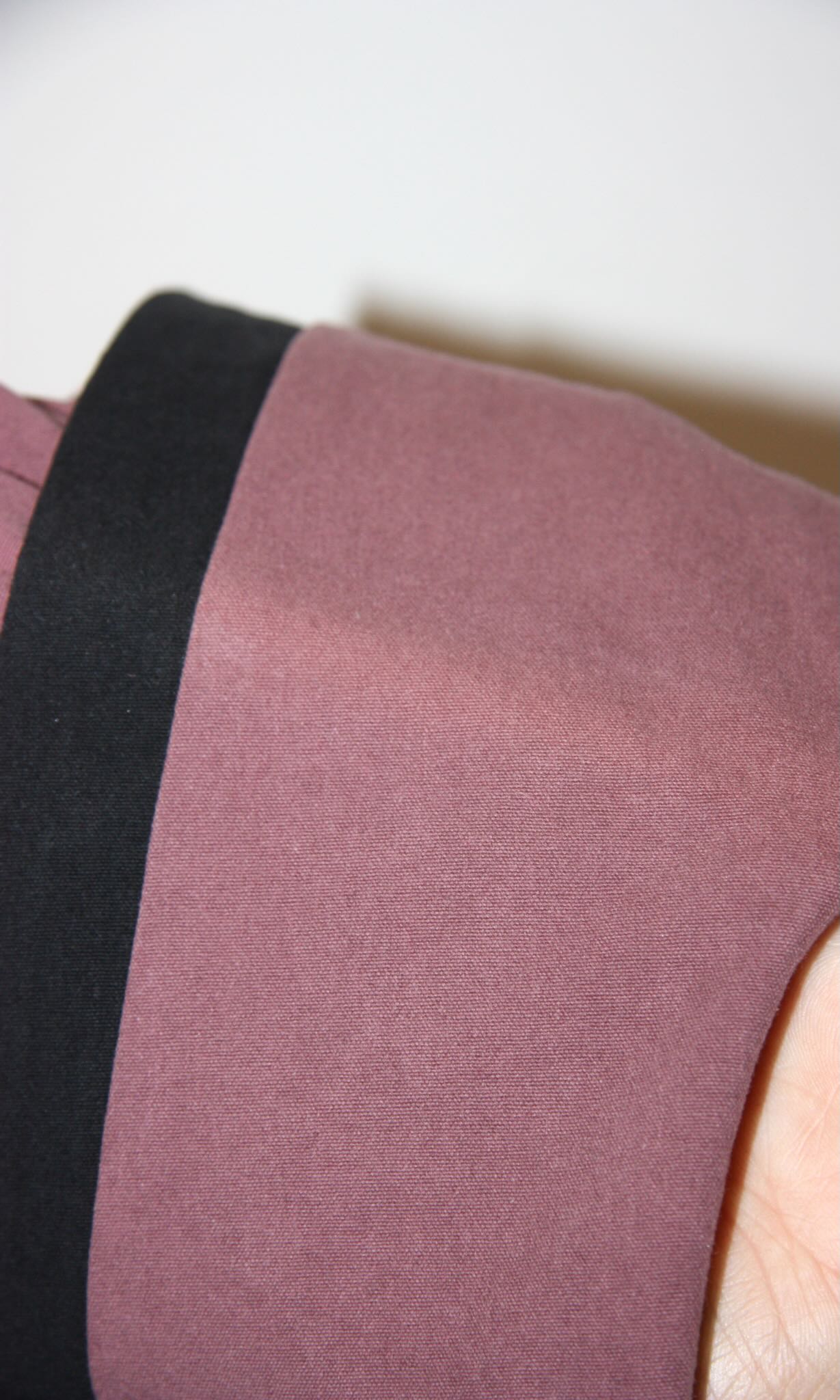Fulvetta has a full skirt with generous in-seam pockets, a V-neck with button-front placket, full sleeves that gather into a contrast cuff, and a the perfect, oversize sailor collar with black edging.