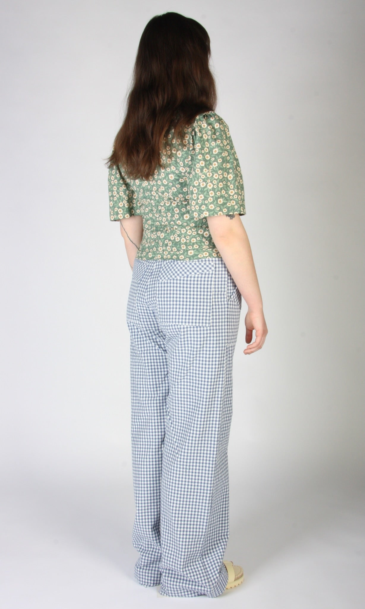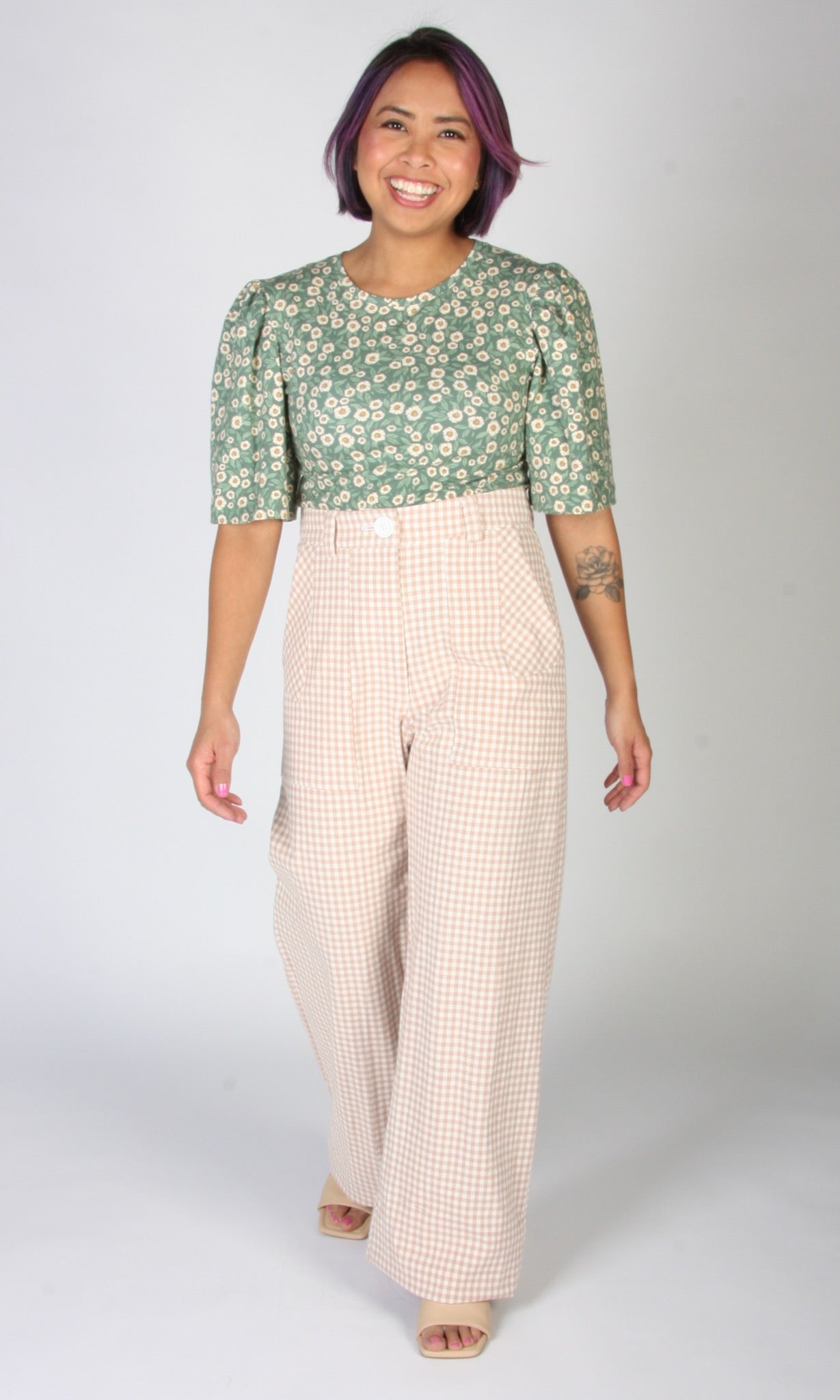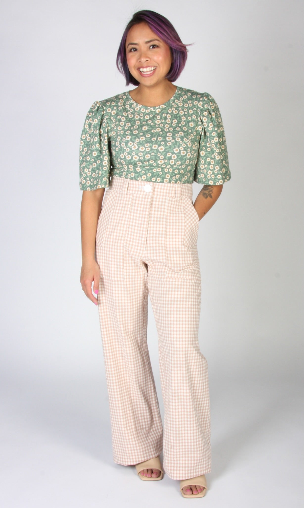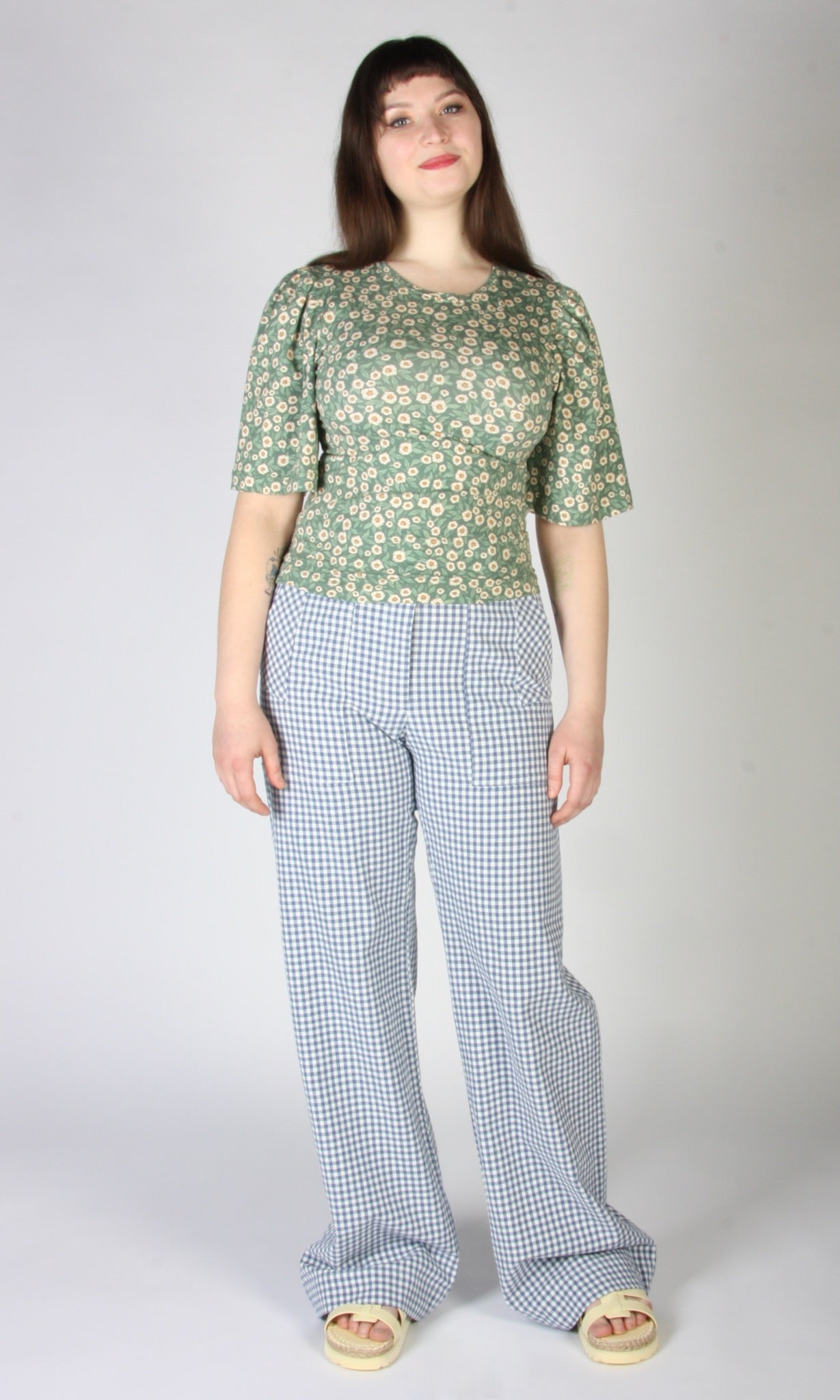 Ruby is 5'10" and wears our size M and Erika is 5' and wears our size XS. Shown here with our Gannet Pant in Blue. Peahen can be hand or machine washed on a cold, delicate cycle and laid flat to dry.